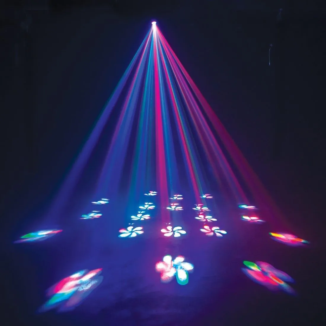 48 лучей. Яркий эффект «лунного цветка» с проецированием 18 гобо-картин. Светодиод 9 Вт (3 цвета в одном!). Угол раскрытия луча 180°. Режимы работы: статичный, под музыку, медленное вращение. Срок службы светодиода 100000 ч.