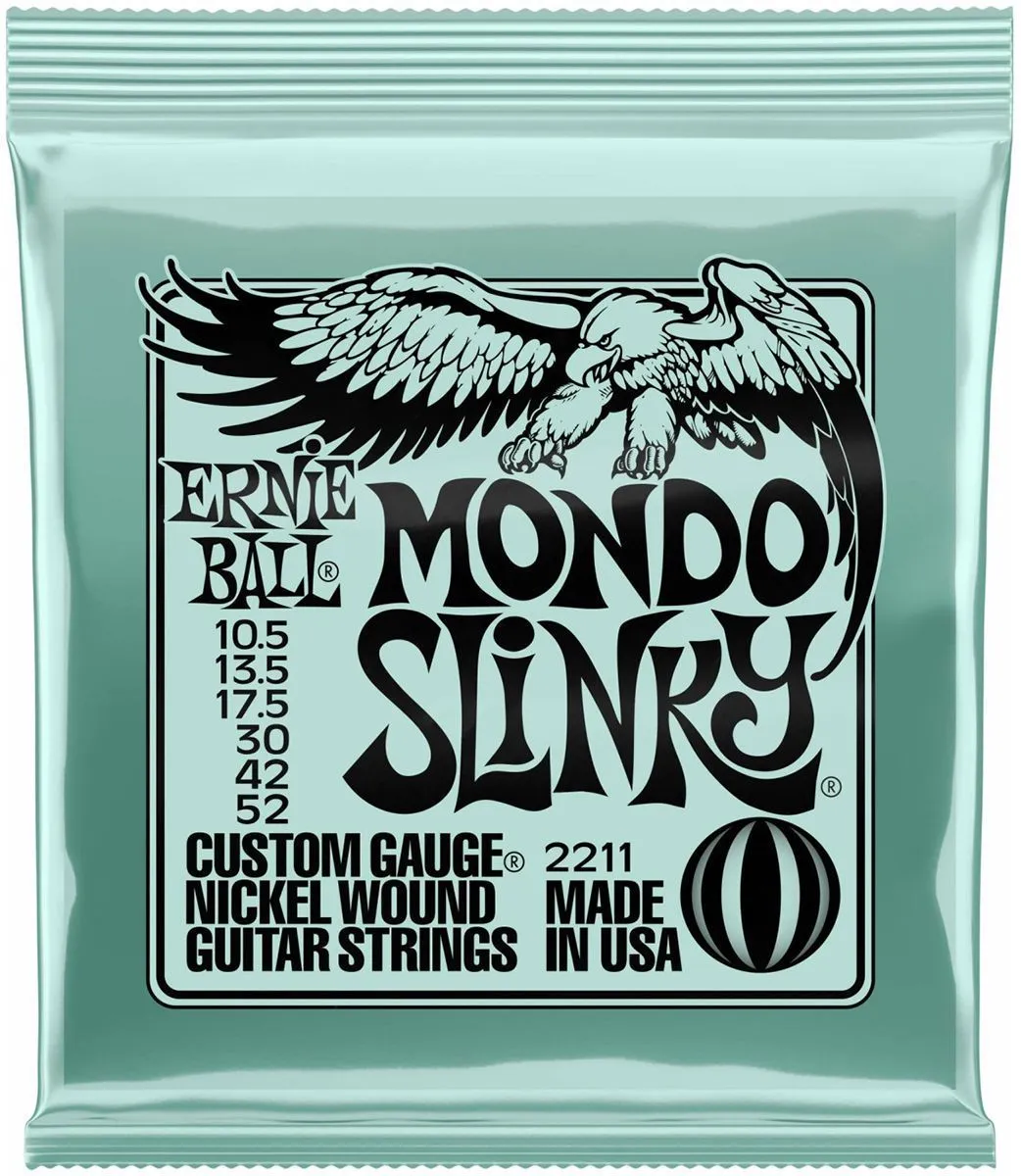 Струны Ernie Ball 2211 серии Mondo Slinky Nickel Wound  для электрогитары идеально подойдут для любителей тяжелых низких частот и более толстых струн в басовом регистре с минимальными различиями в натяжении остальных струн.