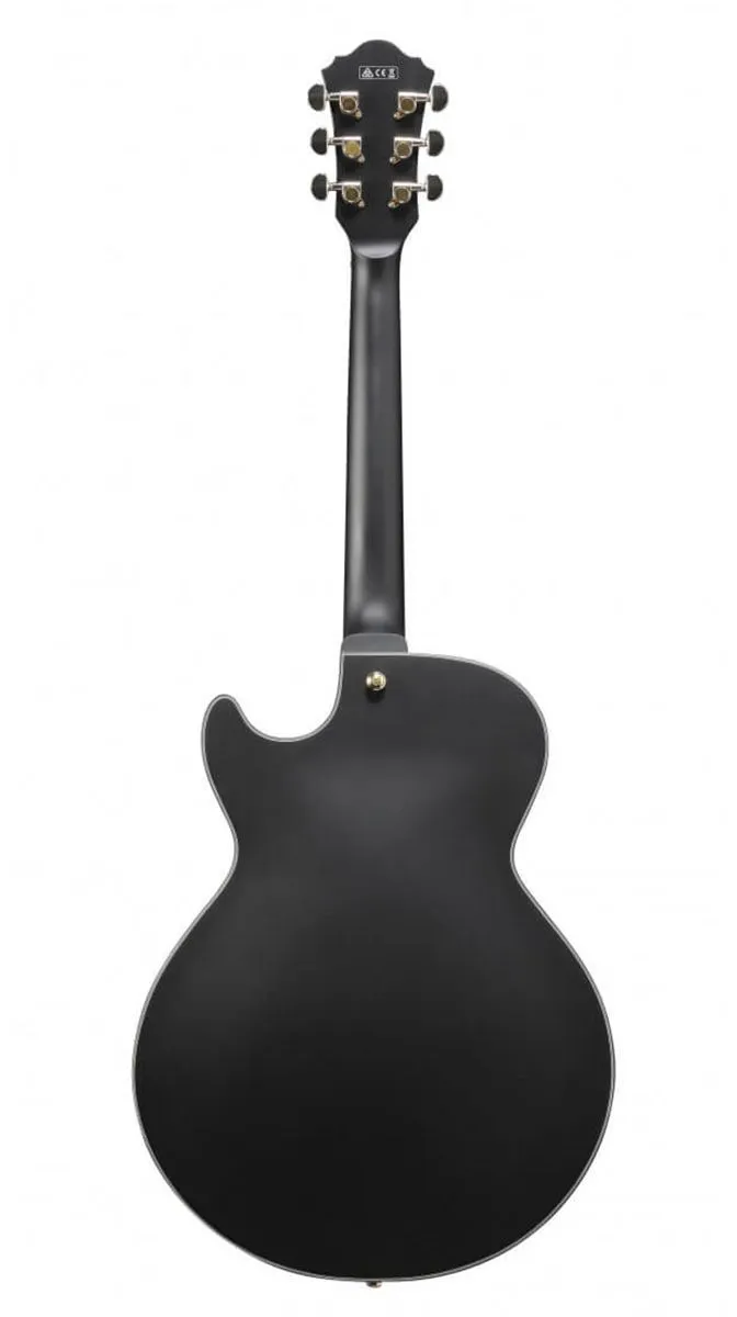 Ibanez AG85-BKF - электрогитара с полым корпусом модельного ряда 2020 года. Это инструмент из новой линейки Expressionist, пополнившей семейство Artcore. Характерная особенность AG85 – оригинальные звукосниматели Magic Touch-Mini. Это пассивные хамбакеры с магнитами Alnico собственной разработки Ibanez, которые позволяют получить чистый, идеально сбалансированный, классический звук, четкую артикуляцию как в диапазоне низких, так и в диапазоне высоких частот. Переключатель звукоснимателей - трехпозиционный. Для настройки звука предусмотрены два регулятора громкости и два регулятора тембра. Корпус гитары полностью выполнен из липы. Гриф – вклеенный, из трех кусков, сочетания ньятон/клен. Мензура – 628 миллиметров (24,7’’). Накладка – из черного дерева с инкрустацией акриловыми прямоугольниками. Радиус накладки – 305 мм. На грифе 22 лада Medium. Бридж Gibraltar Performer со струнодержателем VТ60 обеспечивает великолепный сустейн, позволяет оптимально передать вибрацию струн и отлично держит строй. Гитара представлена в эффектном черном матовом цвете с головой грифа в цвет корпуса, золотыми пикгардом и фурнитурой.