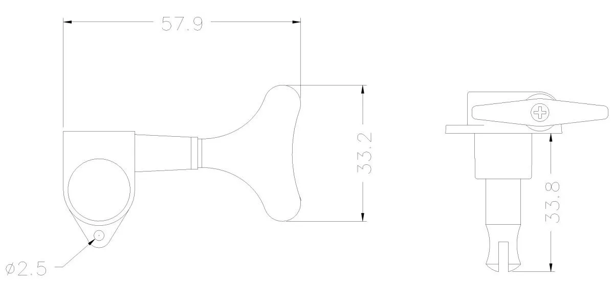 Внешний диаметр втулки, входящей в головку грифа, составляет 13,5 мм (1/2 дюйма). Длина вала снаружи корпуса составляет 30 мм (1-3/16 дюйма). Корпус колков идентичен колкам Grover и Ibanez. Отверстие для крепежного винта находится на расстоянии 3/8 дюйма от центра вала. Гайки, втулки, винты входят в комплект.