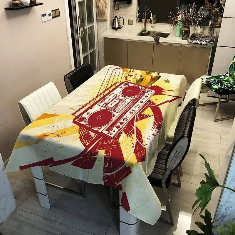 Скатерть с принтом. Ретро магнитола. Полиэстер. Размер 140 х 200 см.