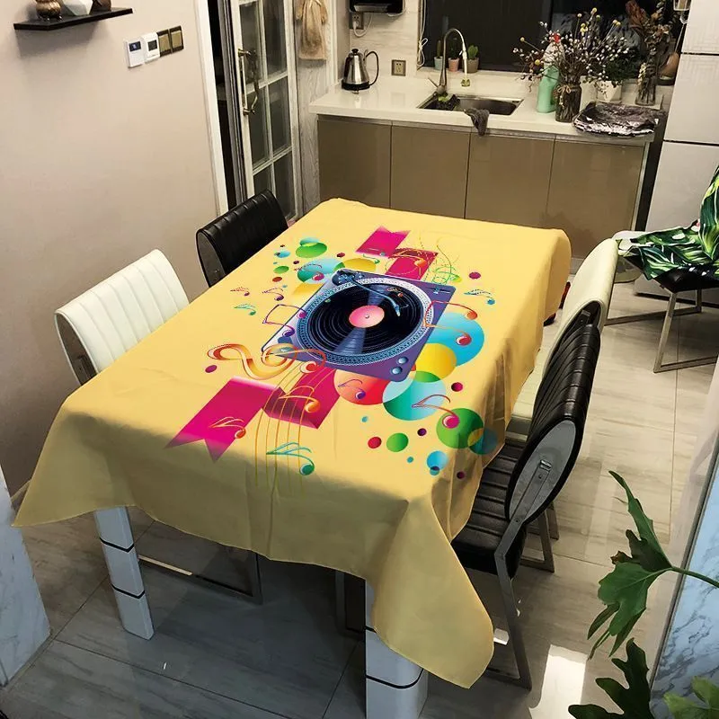 Скатерть с принтом. Виниловый проигрыватель. Полиэстер. Размер 140 х 200 см.